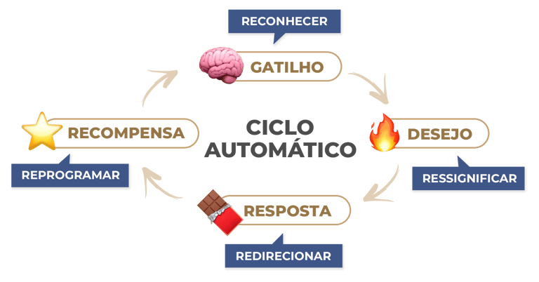 Toda escolha alimentar é precedida por um gatilho: um pensamento, uma emoção, um desconforto, um padrão automático. Enquanto isso continuar invisível, o ciclo continua.