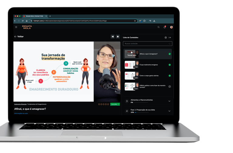 IMPORTANTE: todo o conteúdo do curso tem propósito educacional, para transmitir conhecimento sobre emagrecimento. As informações não devem ser utilizadas para diagnosticar ou tratar condições específicas de saúde. A supervisão médica é indispensável para tratamento de doenças ou transtornos alimentares.